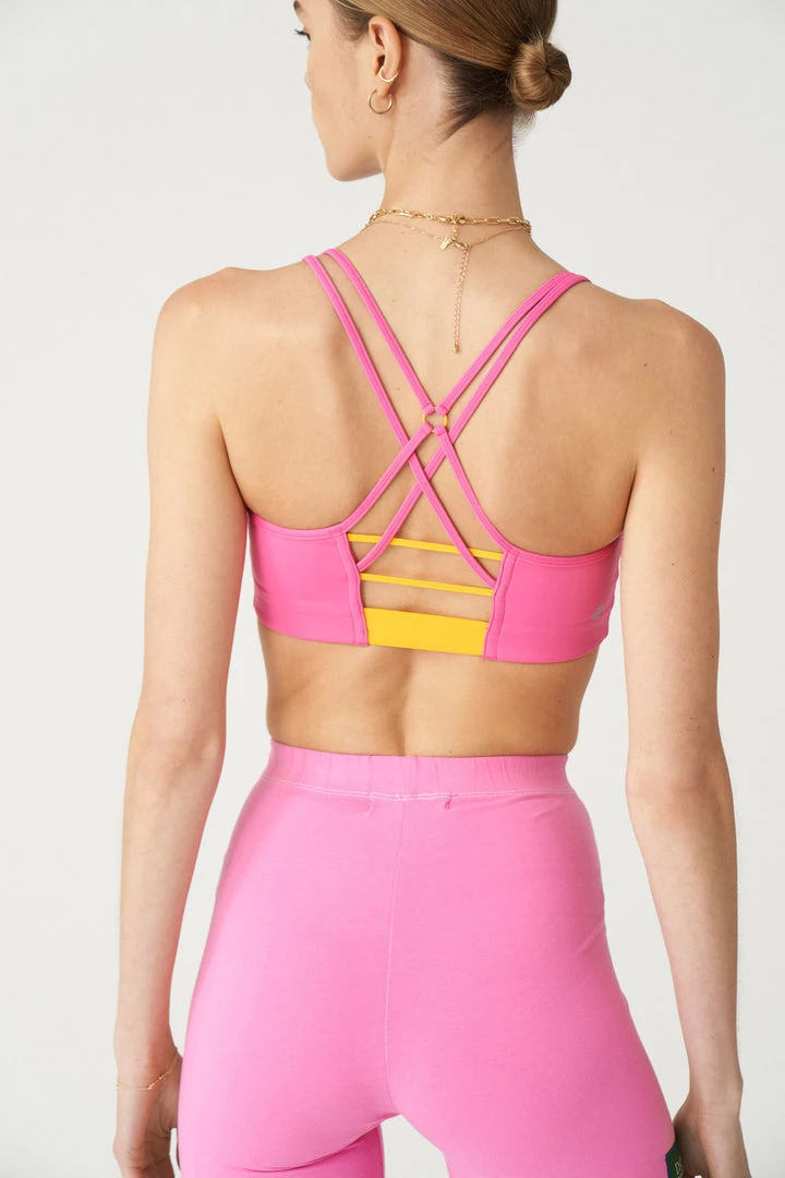 SKU: bras-6551991582754 Categories: All Access, Bras, Clothing, Clothing, Designers, Low Impact, Sale Tags: Color_group:Pink, Color:Flushed Pink W/ Reef Orange/br, EMPSALECLOTHING, Import_041521, Kwi_subclass:LOW, Season:106, YCRF_bra, YGroup_strappy_chorus_bra