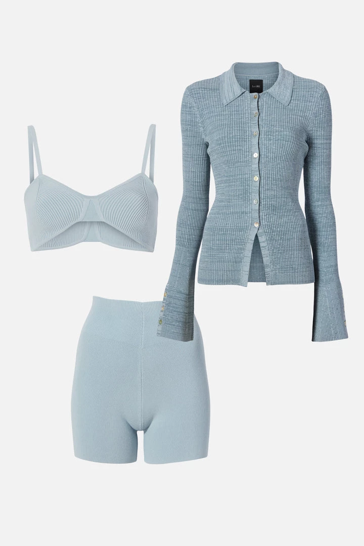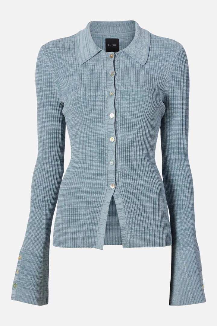 - The Rimini Collared Cardigan has a sleek rib texture with some drape, long sleeves, and buttons down the front and at the cuffs.