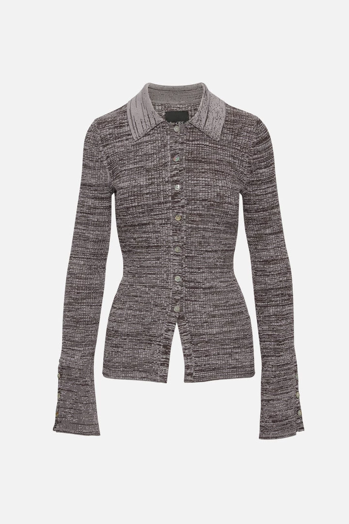 - The Rimini Collared Cardigan has a sleek rib texture with some drape, long sleeves with thumb holes, and buttons down the front and at the cuffs.