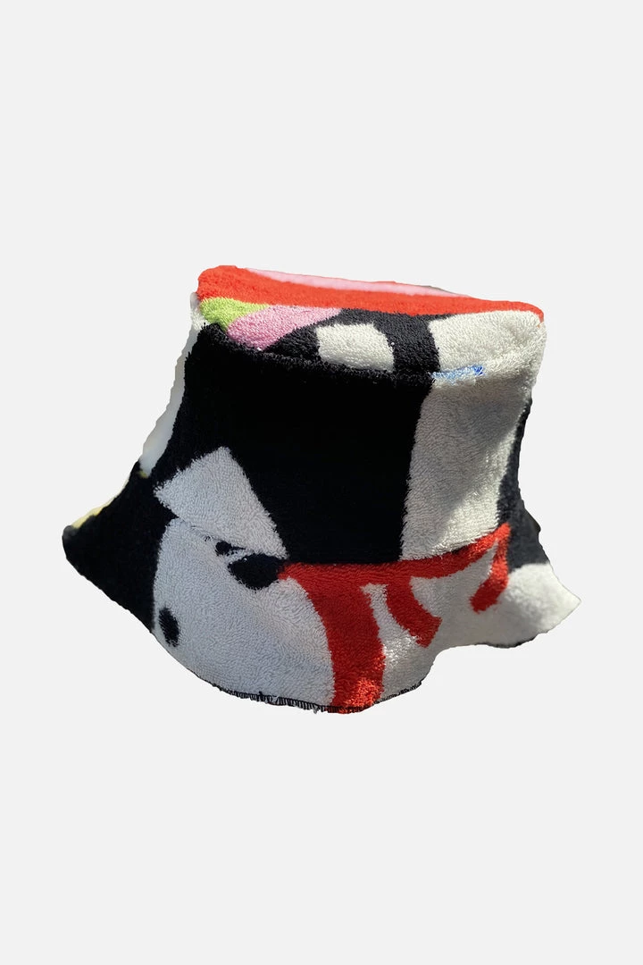 The LilyEve toweling Bucket Hat is Hand Made in New York by repurposing Vintage Chanel towels to create a new and unique up-cycled Garment.