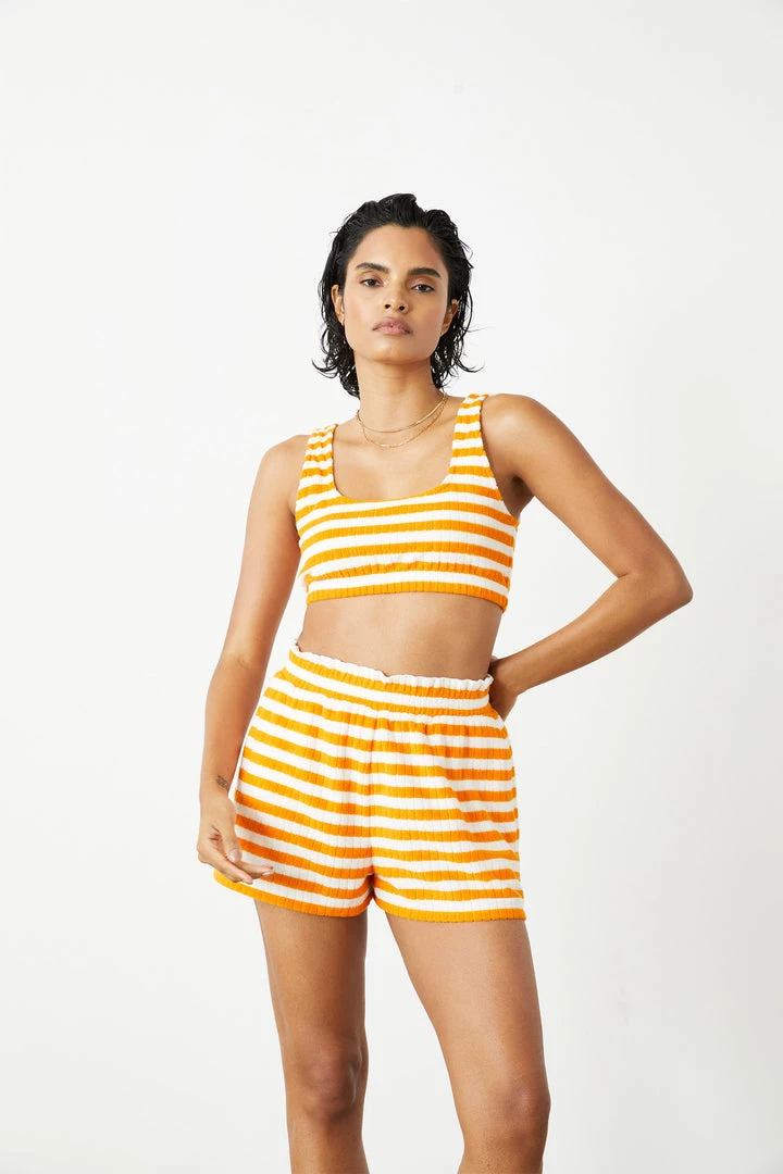 - The Fern Pull On Short is a mid rise lounge short with a 2″ inseam and side seam pockets made from a soft terry fabric.