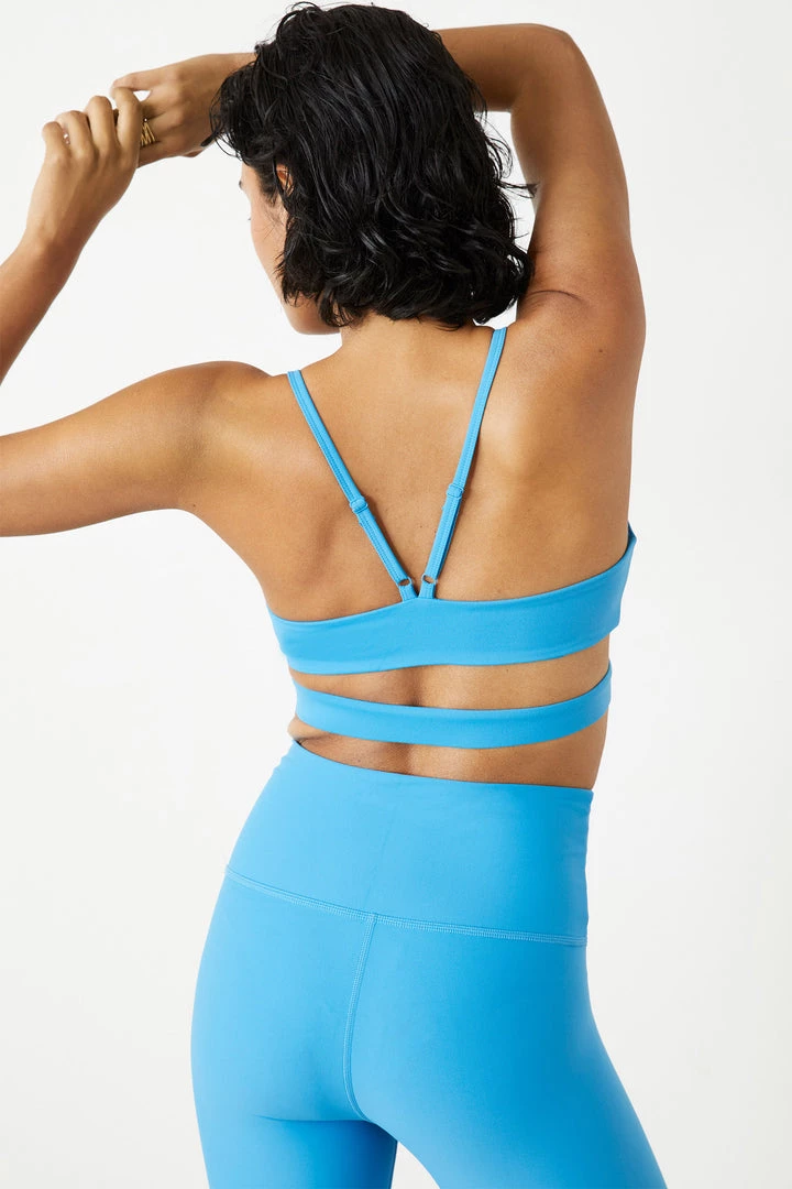 - The Rowan Cutout Bra is a low-impact performance bra with a scoop neckline, adjustable straps, and a cut-out design on the back.