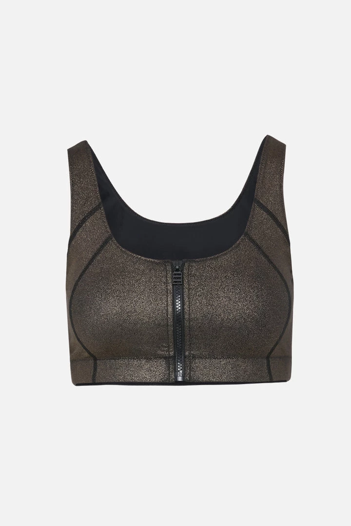 SKU: bras-6789997789218 Categories: Bras, Clothing, Clothing, Medium & High Impact, Sale Tags: Color_group:Metallic, Department:30, EMPSALECLOTHING, Final_sale, Kwi_class:BRA, Season:108, Style_color:BRS27952-F-Gold Foil, YGroup_high_tide_zip_front_bra