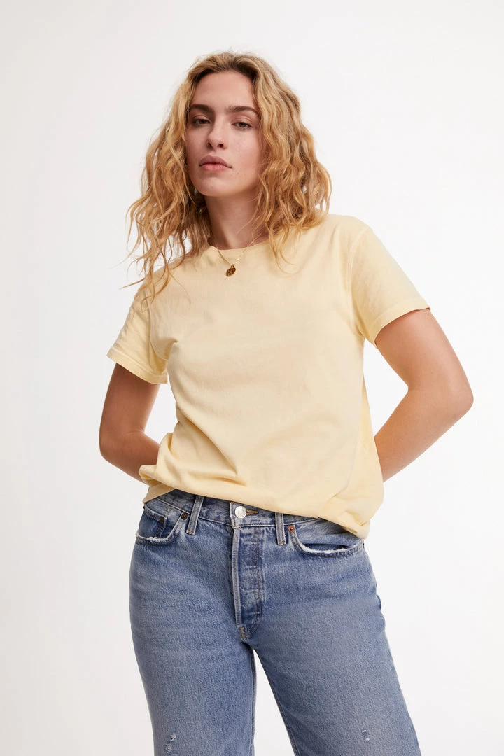SKU: tops-6804750565410 Categories: Clothing, Clothing, Designers, Edits, Exclusives, Featured, Sale, Short Sleeves, Tees by WSLY, Tees by WSLY, The Sustainability Shop, Tops, WSLY Tags: Color_group:Yellow, EMPSALECLOTHING, Import_092521, Kwi_class:TOP, Season:109, Subclass:Tees, Tag:febmd2022, YGroup_chrystie_classic_tee