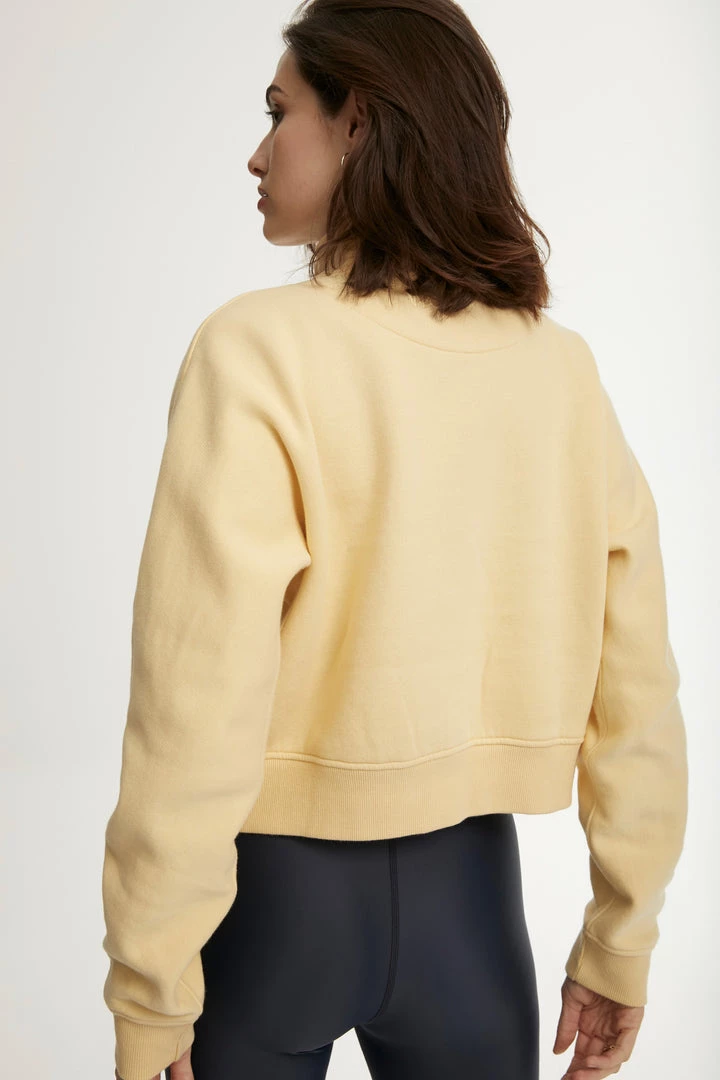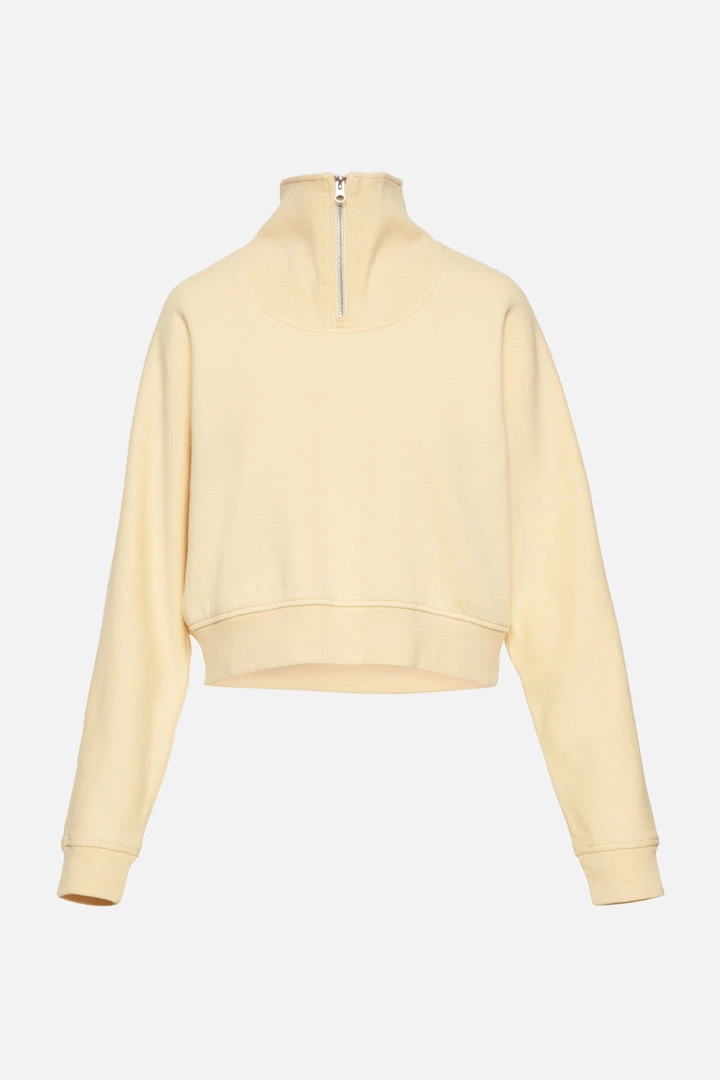 SKU: tops-6804750762018 Categories: Clothing, Clothing, Designers, Edits, Featured, Sale, Sweats & Lounge, Sweatshirts, The Sustainability Shop, Tops, WSLY Tags: Edit:Loungewear, Final_sale, Label:Sustainable, New:boolean:false, Style_color:BW202056-Soft Butter, Subclass:Sweatshirts, Tag:coolhuntergift, YGroup_eco_fleece_cropped_half_zip_mock_neck