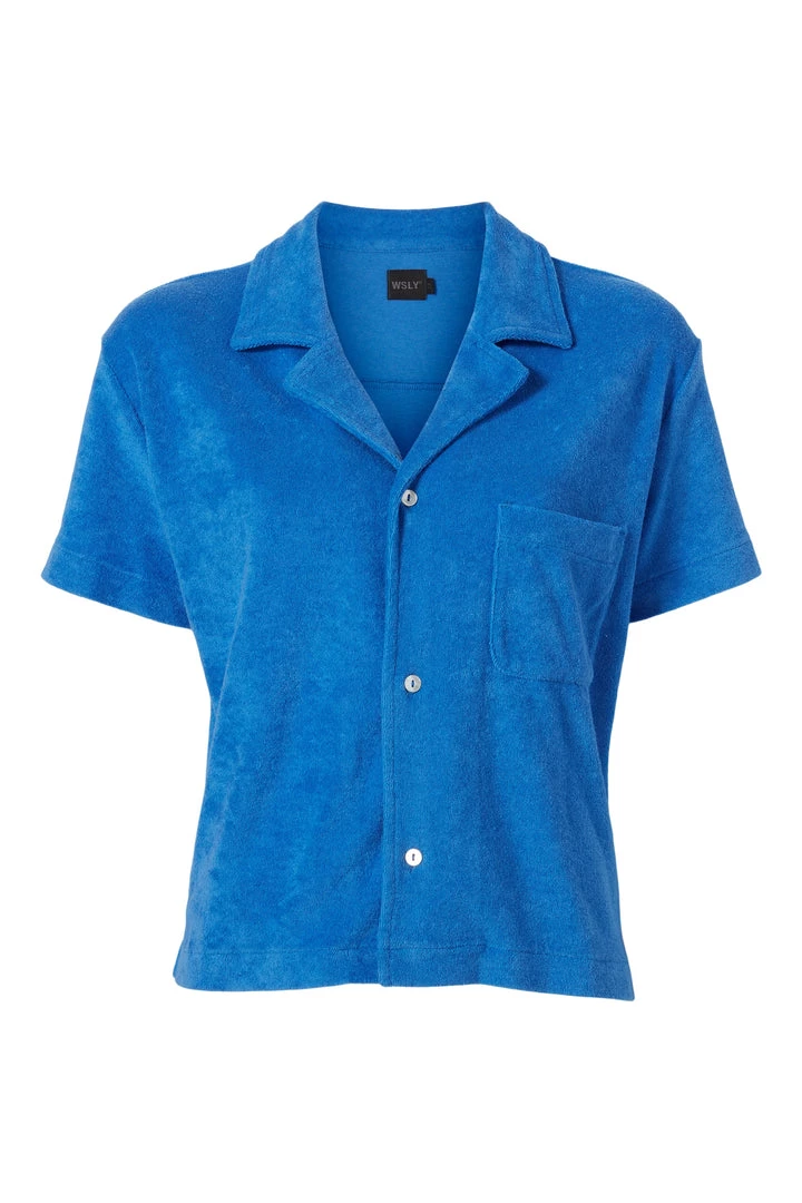 SKU: tops-6986794991650 Categories: Clothing, Clothing, Designers, Edits, Exclusives, Featured, Just Added, New Arrivals, Sale, Short Sleeves, The Swim Shop, The Swim Shop, The Terry Trend, Tops, WSLY Tags: Color_group:Blue, Department:30, Label:new, Style_color:BW202108-Azure, Tag:summersalenew, Tag:terry, YCRF_tops, YGroup_eco_loop_button_down_shirt