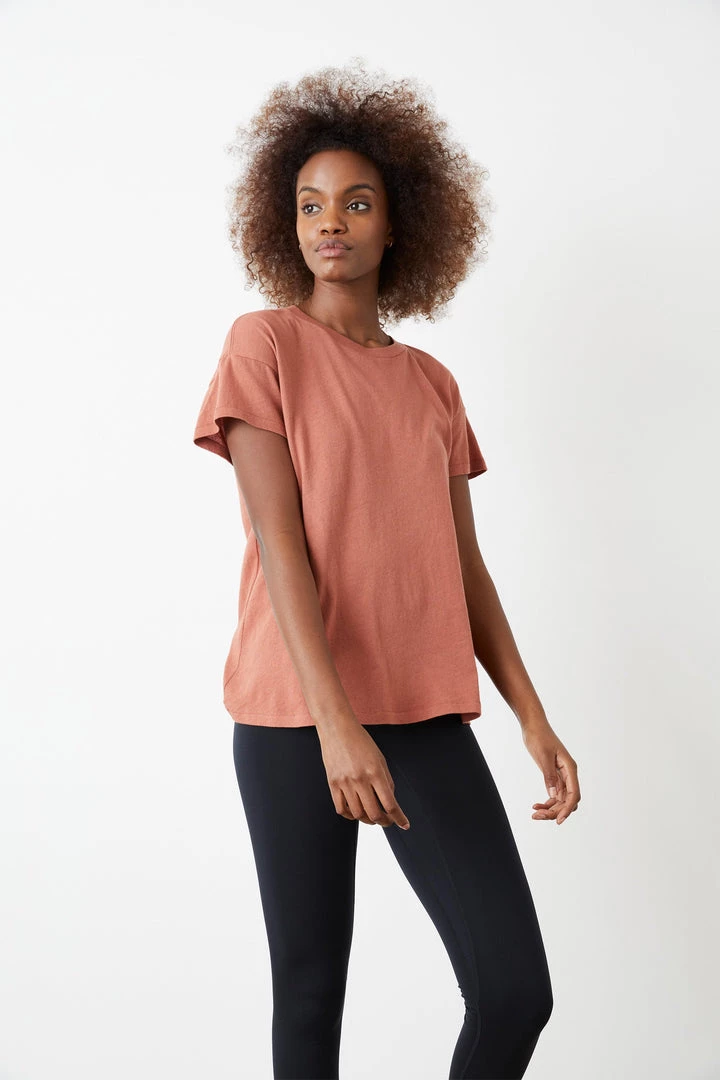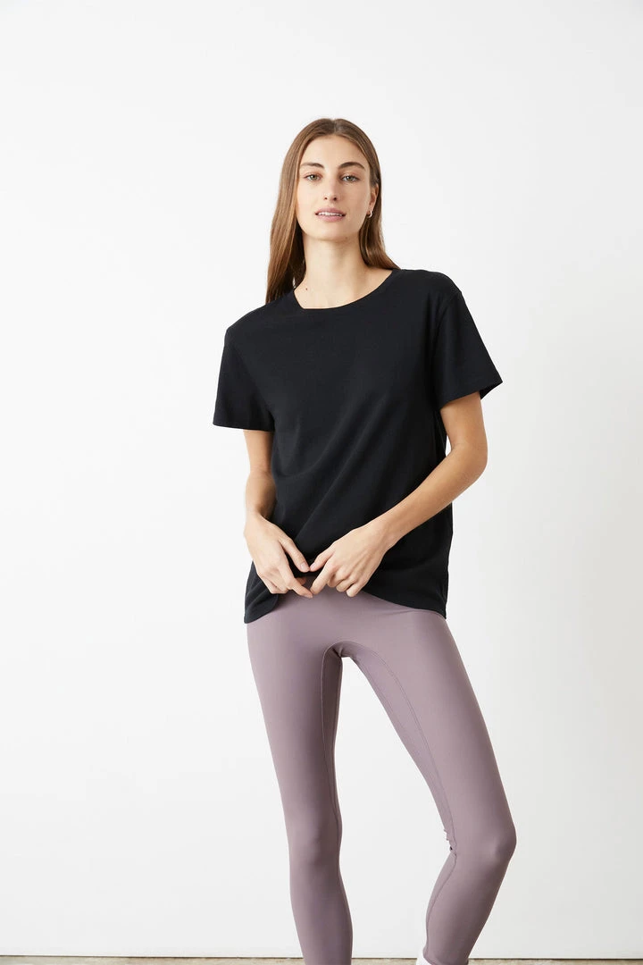 - The Bowery Boxy Tee has a clean look with a crew neckline, short sleeves, and a length that hits right at the waistline.